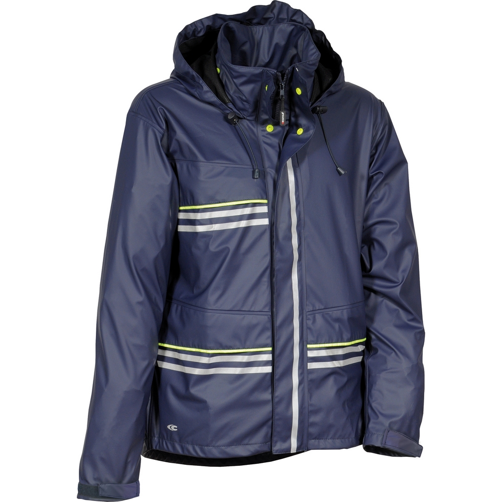 Göğüste çıtçıtlı kapaklı geniş cep, kapaklı geniş ön cepler, fermuar ve çıtçıtla kapatılan çift kapaklı ön açılış, ayarlanabilir katlanabilir kapüşon, tamamen termo kaynaklı dikişler, reflektif detaylar, ayarlanabilir manşetler, ayarlanabilir bel için kordon, arka havalandırma sistemi, rüzgâr geçirmez esnek kumaş.