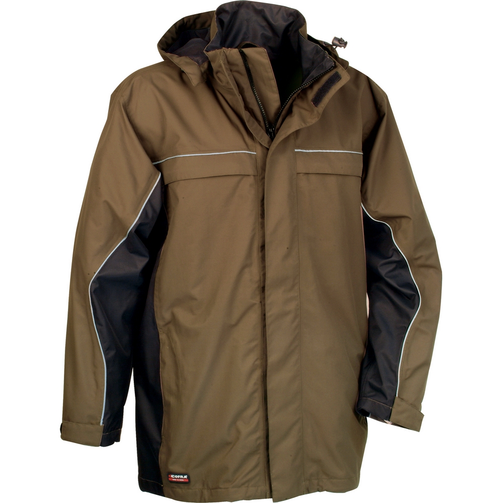“2 adet geniş ön cep fermuarlı, 2 adet kapaklı ve fermuarlı göğüs cebi, havalandırma için ayarlanabilir açılış, reflektif detay, ayarlanabilir katlanabilir kapüşon ve fermuarlı çıkarılabilir alt kısım, termo kaynaklı dikişler, çift yönlü fermuar koruması, file astar, ayarlanabilir manşetler, ayarlanabilir bel için kordon, içte cırtlı cep, Napolyon cep.