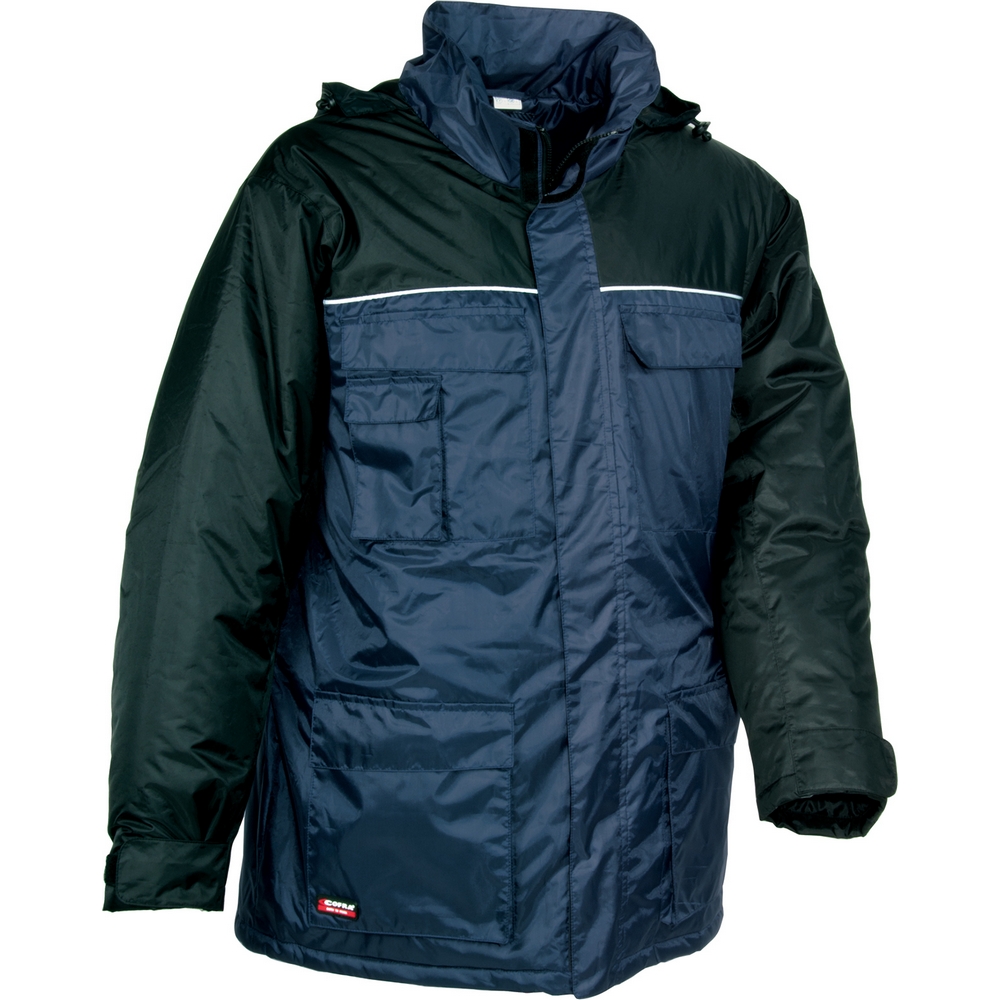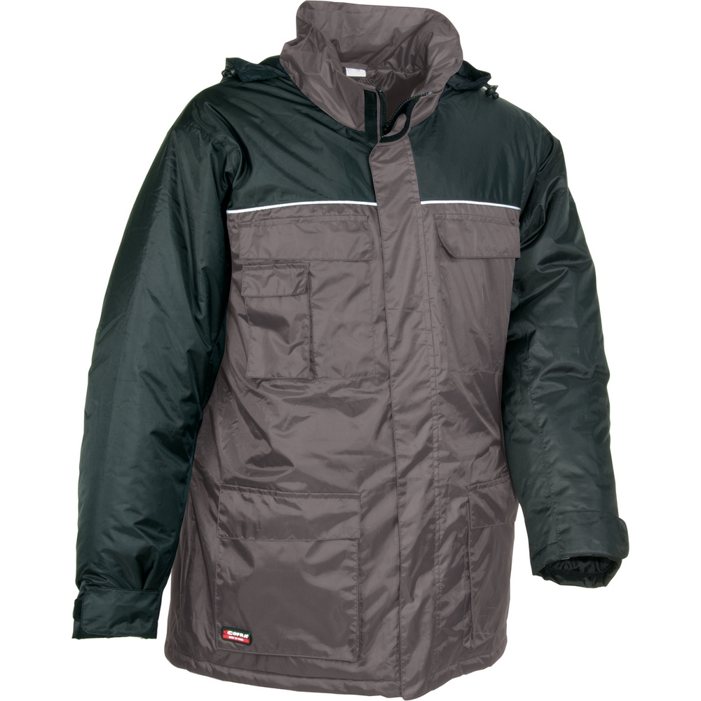 2 adet çift geniş ön cep, 2 adet kapaklı göğüs cebi, ayarlanabilir katlanabilir kapüşon, cep telefonu cebi, içte alt fermuarlı cep.
