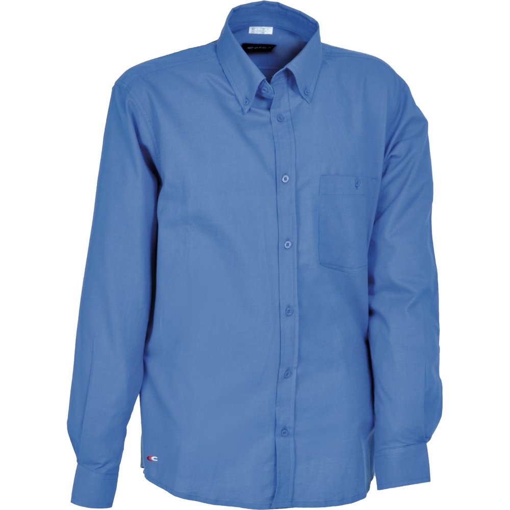 Uzun kollu gömlek, kumaş rengiyle uyumlu plastik düğmeli kapama, düğmeli yaka (Button-down), yuvarlatılmış etek ucu, çift düğmeli ayarlanabilir manşet, sol göğüs cebi plastik düğme ile kapalı