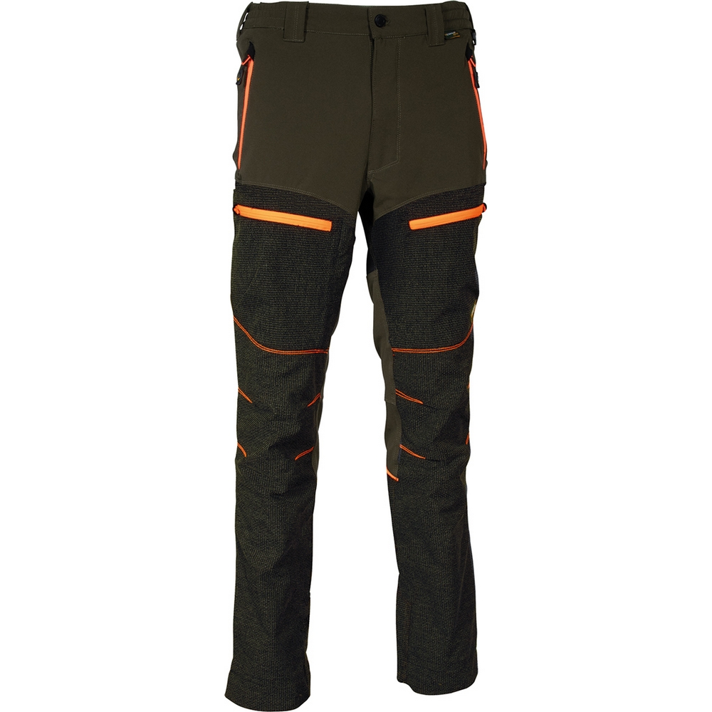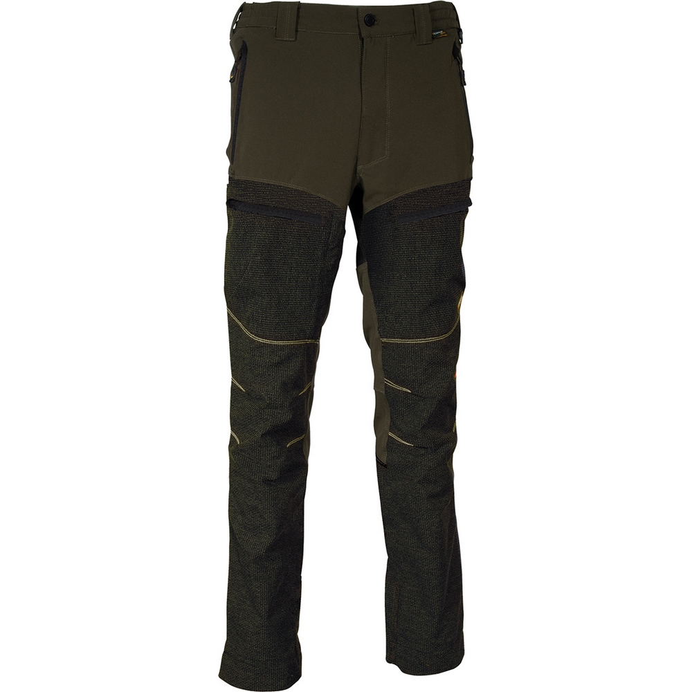 Esnek kumaş, diz ve bacak için ergonomik tasarım, fermuarlı 2 geniş ön cep, fermuarlı 2 arka cep, yüksek bel arka kısım, D-halkası, lastikli bel, diken ve çalılara dayanıklı, fermuarlı 2 bacak cebi ve aşınmaya karşı kumaş, ön ve arka bacak alt kısmında aşınmaya karşı kumaş, her bacakta pantolonun ucunu ayakkabı bağcıklarına takmak için bir kanca bulunmaktadır.