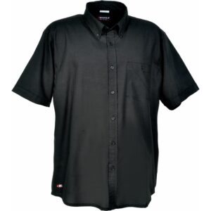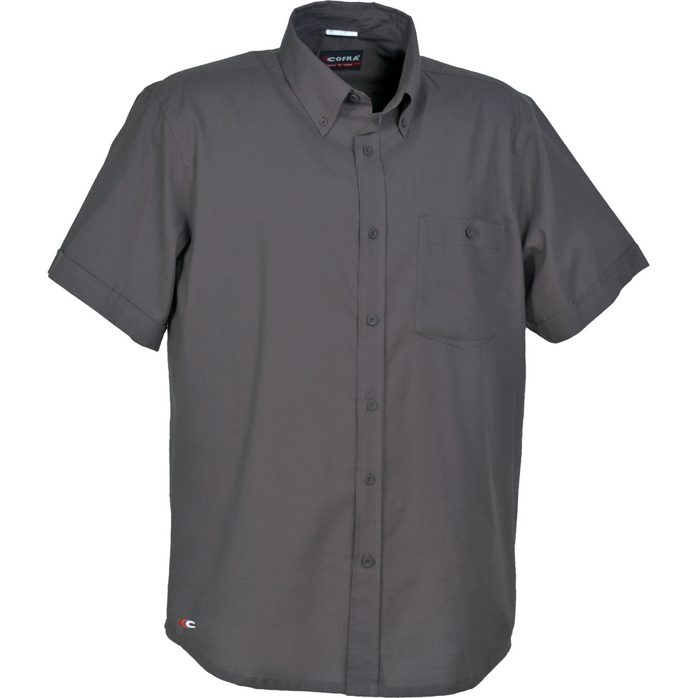 Kısa kollu gömlek, kumaş rengiyle uyumlu plastik düğmeli kapama, yuvarlatılmış etek ucu, kol ucu kapaklı, sol göğüs cebi plastik düğme ile kapalı.