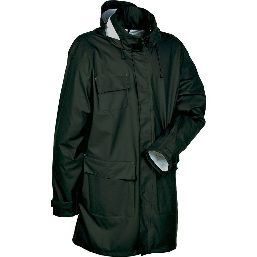 1 adet göğüs cebi, 2 adet geniş ön cep, ayarlanabilir katlanabilir kapüşon, tamamen termo kaynaklı dikişler, ayarlanabilir manşetler, arka havalandırma sistemi, rüzgâr geçirmez elastik kumaş.