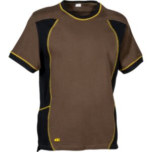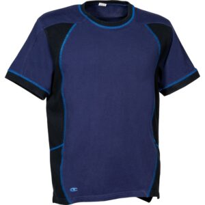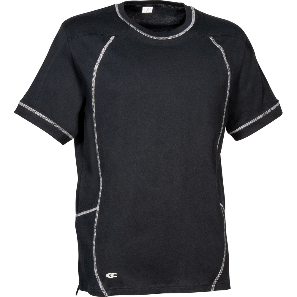 Daha iyi nefes alabilirlik için yan ve koltuk altı bölgelerinde delikli pamuk paneller, yan yırtmaçlar, pamuk tişört.